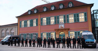 Die Polizei ist vor Ort und hat sich vor dem Palais Hirsch platziert.