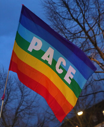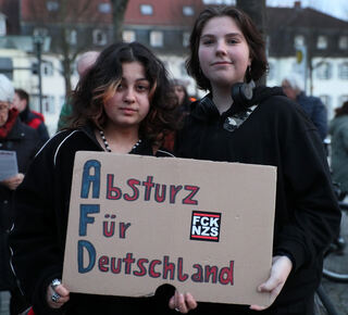 Kundgebung "Keine Räume für rechte Hetze!" auf dem Schlossplatz: Alex und Lio.