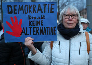 Kundgebung "Keine Räume für rechte Hetze!" auf dem Schlossplatz: Christiane Winkler.