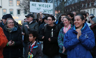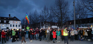 Mehr als 200 Menschen sind zur Kundgebung gegen Rechts auf den Schlossplatz in Schwetzingen gekommen.
