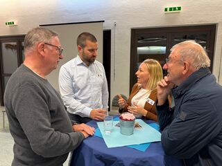 Die Gemeinderäte Simon Jarke (2.v.l.) und Sabrina Arns (2.v.r.) im Dialog mit Bürgern.