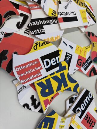 Buttons und Bleistifte als Werbung für die Demokratie.