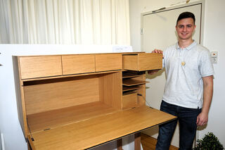 Johannes Stieme aus Fränkisch-Crumbach überzeugte mit einem Büroschrank aus Nussbaum und Linoleum. Bild: Widdrat