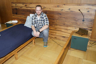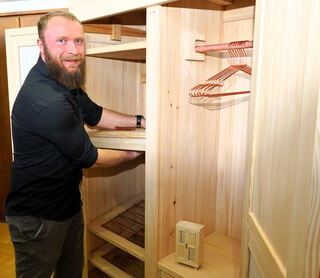 Leon Walther (27) aus Mannheim: Sein filigraner Kleiderschrank aus Esche und mit Shoji-Papier bespannt ist ein echter Hingucker. Bild: Widdrat