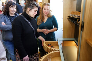 Die Fächer des Barschranks werden durch ein Zahnradsystem geöffnet. Bild: Widdrat