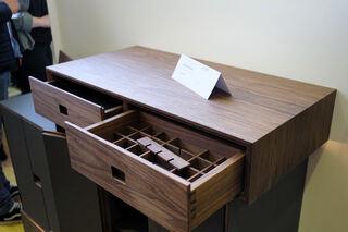 Lukas Seltenreich aus Meckesheim hat die Idee für einen Schminktisch aus Olive-Furnier und Fenix-Oberflächen gehabt. Bild: Widdrat
