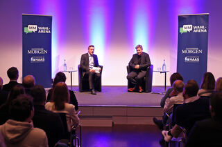 Robert Habeck (rechts) hat sich bei der MM-Wahlarena den Fragen von Chefredakteur Karsten Kammholz gestellt.