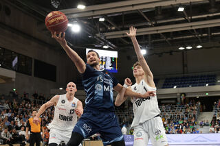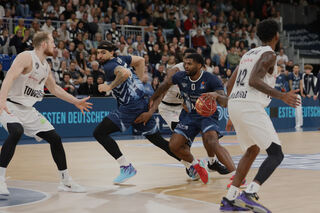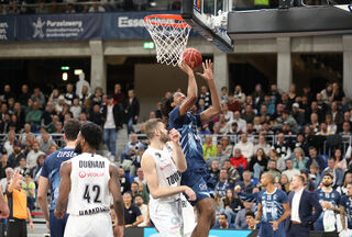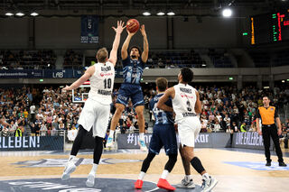 Der Ex-NBA-Spieler Paul Zipser zeigt seine Klasse gegen den Hamburger Niklas Krause.
