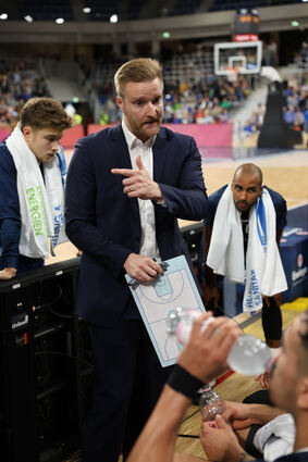 Academics-Headcoach Joonas Iisalo analysiert das Spiel seines Teams.