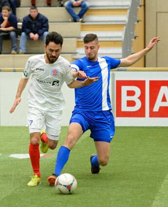 Mannheims Murat Efe (l.) gegen Wallstadts Orhan Paz.