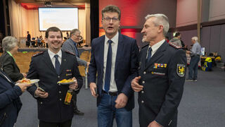 Kevin Wetzler (v. l.), stellvertretender Feuerwehrkommandt, Hauptamtsleiter Stefan Kuhn und Kommandant Thorsten Lehrenkrauß. Bild: Gans