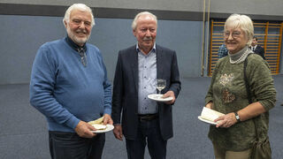 Der ehemalige Schulrektor Rainer Heidemann (links) im Gespräch mit Horst Schultz und Gattin. Bild: Gans