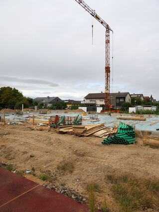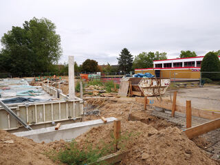 Das Fundament der neuen Mensa ist nahezu fertig, in den kommenden Wochen muss es trocknen und ruhen.