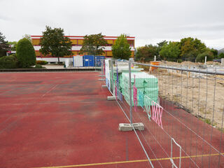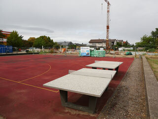 Der rote Bolzplatz ist weiterhin durch den Mensaneubau zerteilt und wird noch abgerissen.
