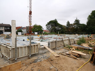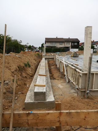 Die Planer haben beim Neubau vorausgedacht: Dieser längliche Teil des Fundaments kann später für Außentreppen genutzt werden, falls nachträglich ein zweites Stockwerk aufgesetzt werden sollte.