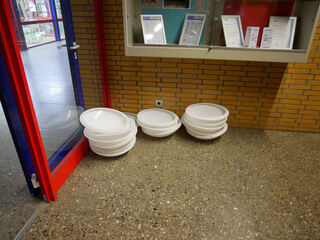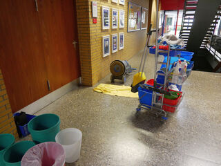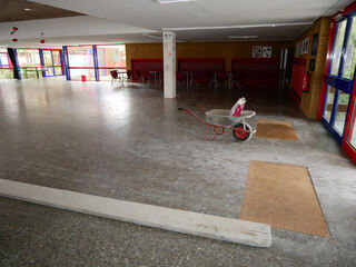 Parallel zur Toilettensanierung gibt es in der Neurottschule einen Grundputz: Allerdings bringen die Handwerker für die Toilettensanierung derzeit noch viel Schmutz ins Foyer.