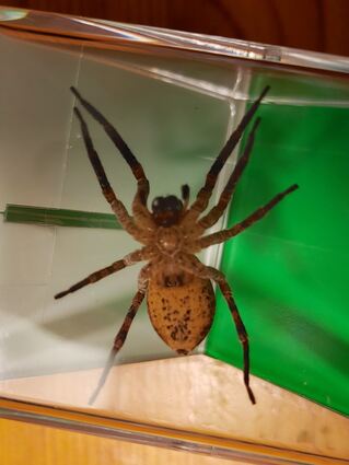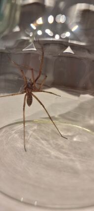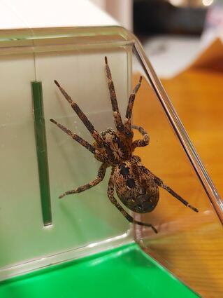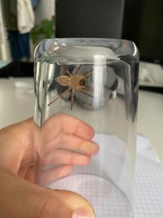 Mit einem Glas eingefangen hat auch Maina Greif ein Exemplar der einst exotischen Nosferatu-Spinne, die mit beinen sechs bis acht Zentimeter messen kann.