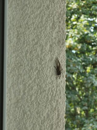 In der Pfalz fühlt sich die Nosferatu-Spinne offenbar besonders wohl - etwa hier bei einer Nutzerin aus dem Siedlungsgebiet Melm in Ludwigshafen-Oggersheim.