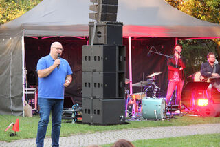 Bevor die Band richtig los legt, begrüßt Bürgermeister Jens Geiß das Publikum mit einem großen Dankeschön an alle, die diesen Abend ermöglicht haben.
