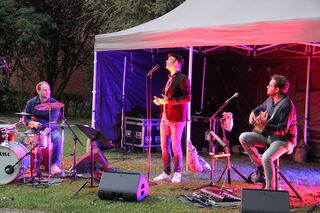 Bis in die Dunkelheit bespielen Dominik Steegmüller und seine Kollegen das Publikum mit Klassikern, rockigen Nummern sowie sanften Balladen.