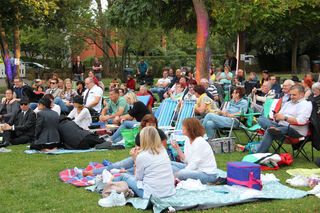 Ein herrlicher Sommerabend mit Snacks, Getränken und Musik - das Publikum ist sichtlich zufrieden.