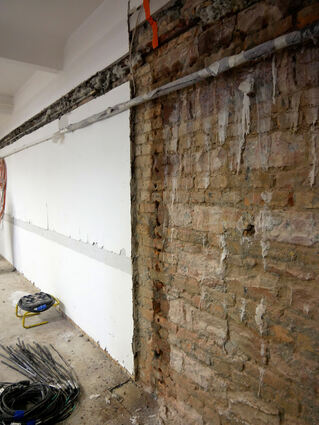 Die historischen Wände werden aufgebohrt und eine Horizontalsperre mit Spezialparaffin eingebracht - so soll der Keller wieder trocken und nutzbar werden.