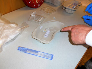 Der Abstrichtupfer wird in das Probenahmeröhrchen eingeführt.