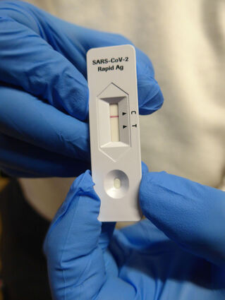 Ein negatives Testergebnis ist in der Antigen-Testkassette zu sehen.
