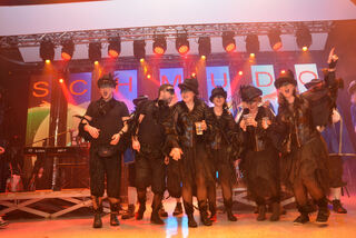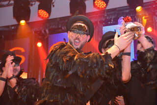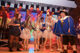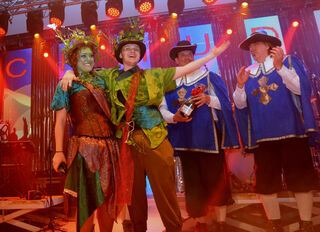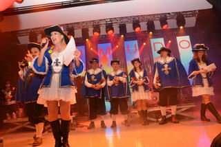 Der Höhepunkt der Party: Silvia Höfs kommt mit ihrem Musketier-Team des Vereinskartells auf die Bühne und die Preisverleihung beginnt.
