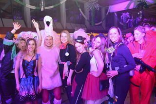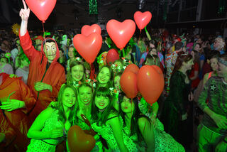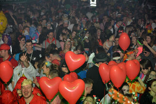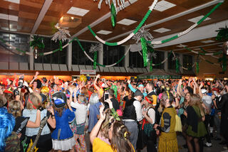 Farbenfrohe Partyleute machen aus der Kurpfalzhalle den angesagten Schmudo-Tempel.