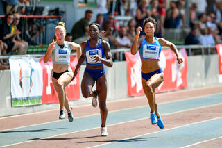 100-Meter-Lauf mit Sophia Junk , Darlyy Neita und Malaika Mihambo.