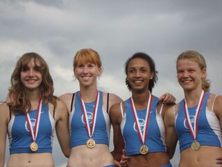 Sieg mit der B-Jugend weiblich der LG Kurpfalz bei der Sieg in der DJMM 2011: v. l. Sara Würfel, Malaika Mihambo, Julia Schechinger, Leonie Rabe, Eileen Dudda, Chantal Berg, Christiane Schmitz, Sophia Assmann.