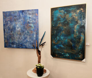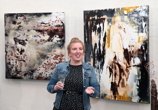 Alexandra Ulrich vor ihren Kunstwerken "Dream river" und "Wonder".