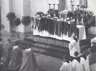 Der Abt bei seine Benedikiton in Münsterschwarzach im Jahr 1982.