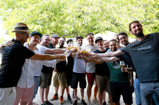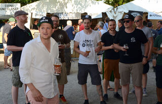 Dr. Hans Spielmann und sein Sohn, Biersommelier Max Spielmann prosten den Bierbrauern zu, die den Tap-Days den Charakter geben.
