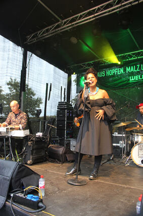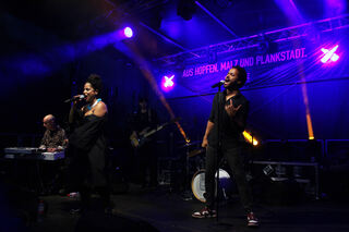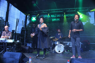 Die "Soulsneakers" aus Heidelberg sorgten für Stimmung: Xaver Fischer am Keyboard (v.l.), Cem Firat (Bass), Nicole Hadfield (Vocals), Hendrick Smock (Drums) und Jeffrey Amankwa.
