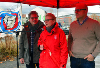 Von links: Rainer Schäfle (stellvertr. Konzernbetriebsratsvorsitzender GE Power), Elisabeth Möller (Konzernbetriebsratsvorsitzende GE Power und Betriebsratschefin am Standort Mannheim) und Klaus Stein (Chef Mannheimer IG Metall).