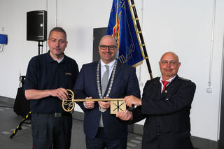 Am Freitagabend wurde das Rettungszentrum (Eichendorffstraße 34) an seine zukünftigen Nutzer durch Bürgermeister Jens Geiß offiziell übergeben.