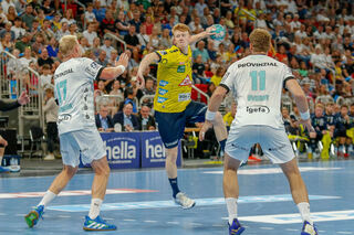 Löwen-Spieler Jon Lindencrone Andersen wirft.