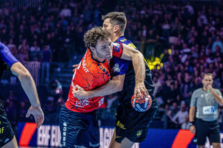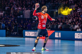 Rhein Neckar Loewe Juri Knorr (Nr.10) am Ball beim Spiel in der EHF European League, HBC Nantes - Rhein Neckar Loewen.