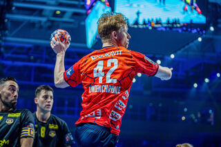 Rhein Neckar Loewe Jon Lindenchrone Andersen (Nr.42) beim Wurf beim Spiel in der EHF European League, HBC Nantes - Rhein Neckar Loewen.