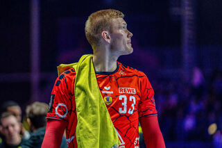 Rhein Neckar Loewe Joel Birlehm (Nr.35) im Tor beim Spiel in der EHF European League, HBC Nantes - Rhein Neckar Loewen.