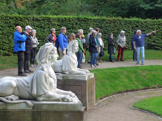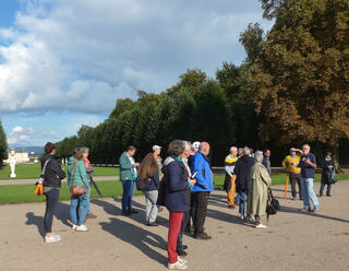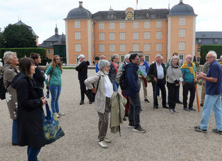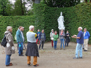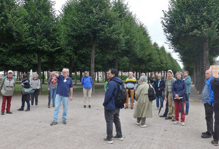 Dr. Christoph Bühler (r.) vermittelte den 25 Teilnehmern der Schlossgartenführung zum Thema Nachhaltigkeit viel Wissenswertes über des "Kurfürsten ökologischen Fußabdruck".