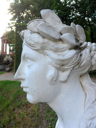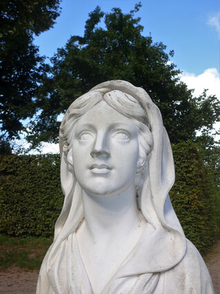 Die Wegachsen werden an ihren Enden von Statuen begrenzt.