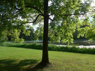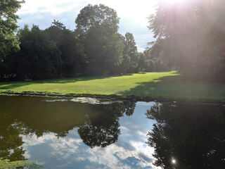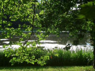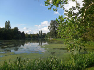 Der Weiher. Dahinter geht der Schlossgarten noch weiter.