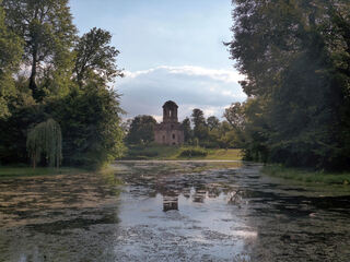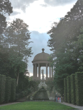 Der dunkle Merkurtempel ist eine künstlich angelegte Ruine und weist auf die Vergänglichkeit hin.