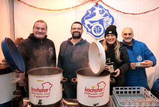 Beim C.C. Grün-Weiss Oftersheim rühren Delia Weiß, Madelaine Lilli, Christina Janko und Sarah Rebmann im Topf mit Käsefondue.
