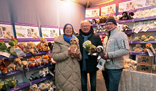 Warmies - Kuscheltiere zum Warmmachen in der Mikrowelle begeistern immer wieder - hier Christel Popp-Völker, Dr. Bruno Völker und Michael Syring.