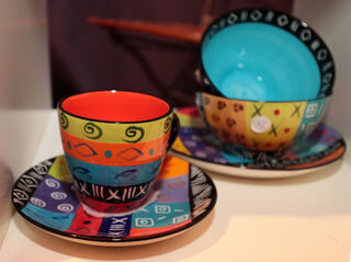 Witzige Idee: Mundartgeschirr gibt es bei Thorsten Assfalg und Anke Faust.