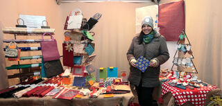 Hildegard Maier hat schöne Papierwaren, Deko und Anhänger dabei.